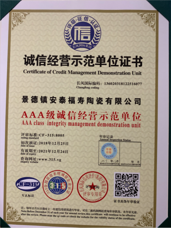誠信經(jīng)營示范單位