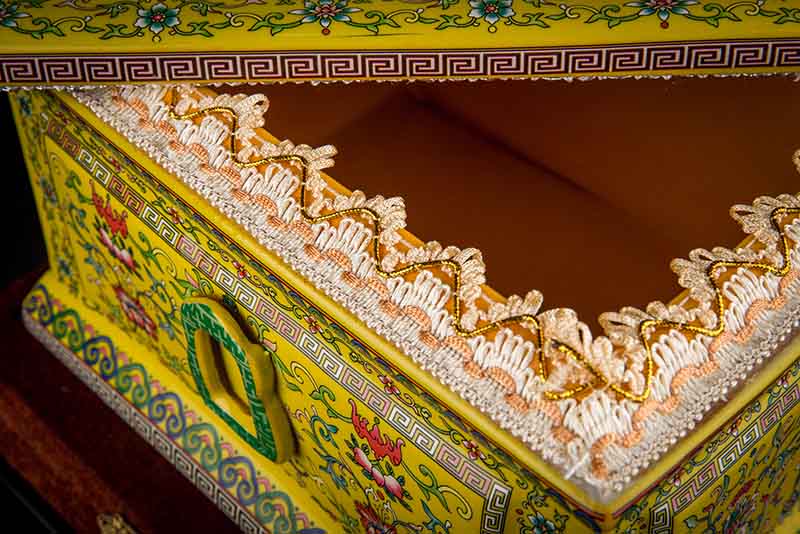 這款【吉祥如意】系列產(chǎn)品,目前有幾種顏色釉系列,黃、藍(lán)、紅、以及黑。這款產(chǎn)品運(yùn)用中國古代傳統(tǒng)的吉祥紋飾—“纏枝蓮”?!袄p枝蓮”常運(yùn)用在陶瓷作為點(diǎn)綴,因其結(jié)構(gòu)連綿不斷,故又具“生生不息”之意,同樣保后代代代繁榮。尺寸:300x230x210mm