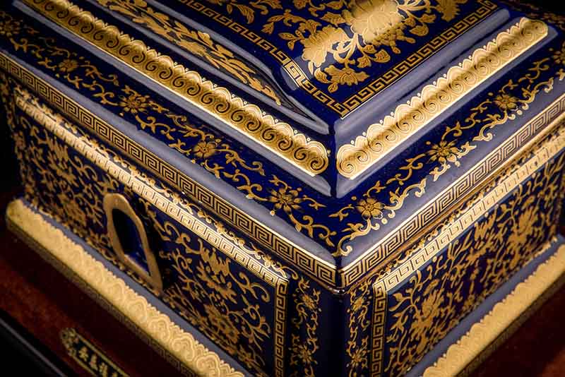 這款【吉祥如意】系列產(chǎn)品,目前有幾種顏色釉系列,黃、藍、紅、以及黑。這款產(chǎn)品運用中國古代傳統(tǒng)的吉祥紋飾—“纏枝蓮”。“纏枝蓮”常運用在陶瓷作為點綴,因其結(jié)構(gòu)連綿不斷,故又具“生生不息”之意,同樣保后代代代繁榮。尺寸:300x230x210mm