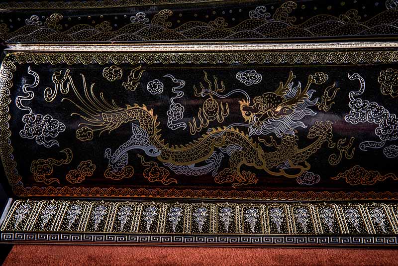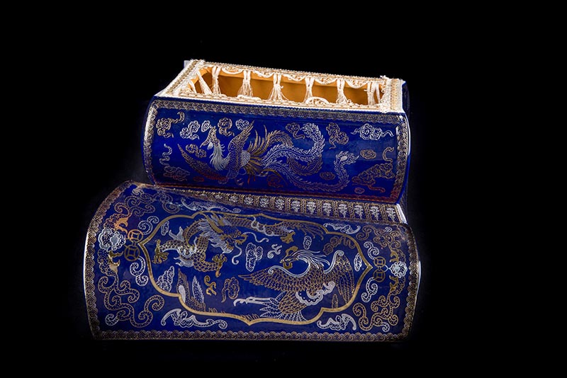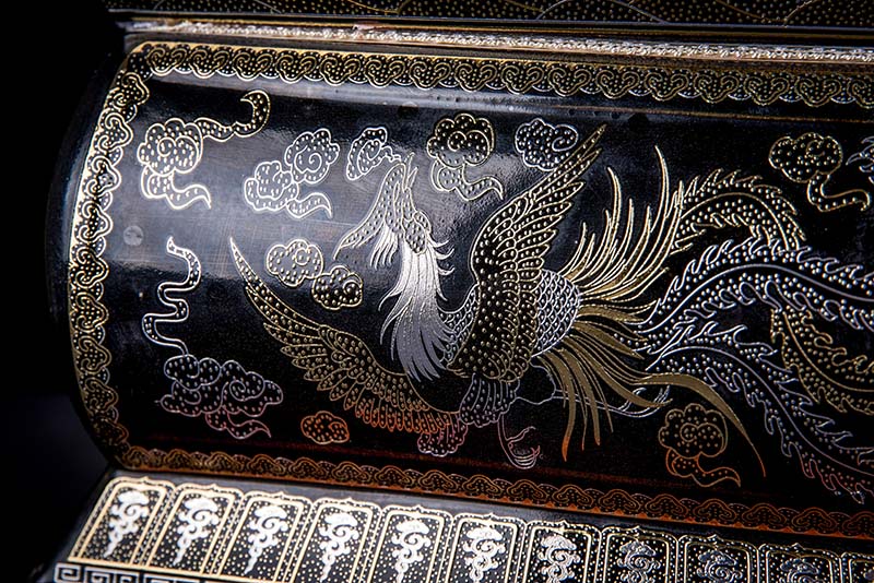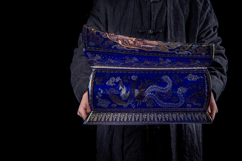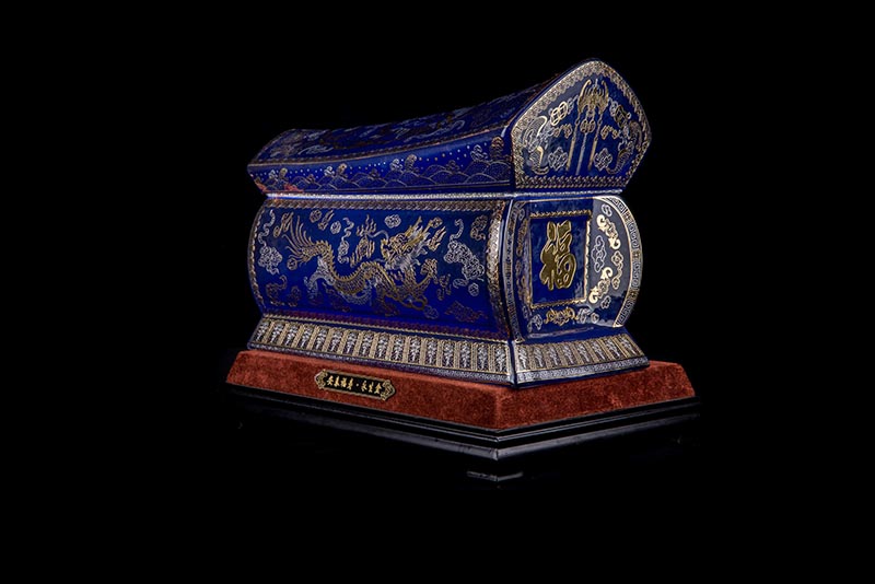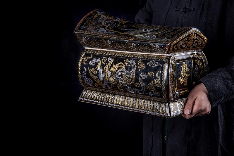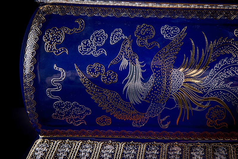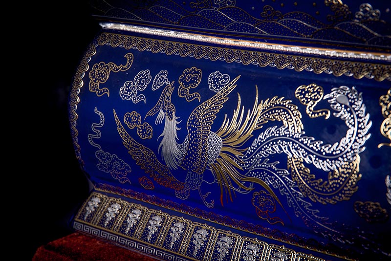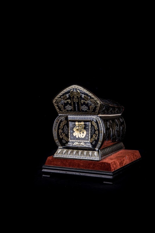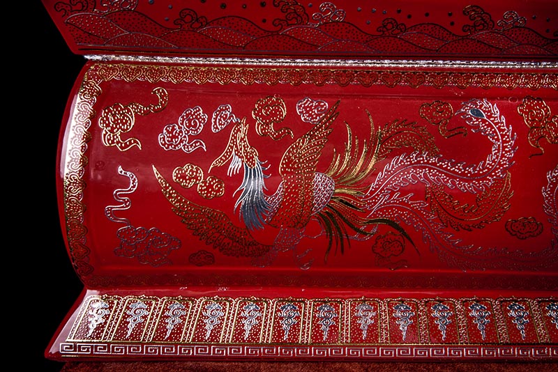 這款【金銀龍鳳】系列產(chǎn)品器型是傳統(tǒng)的長棺造型,古人常說:見棺者,升官發(fā)財,可見它的美好寓意。我們可以看到這款產(chǎn)品,一面龍,一面鳳,素有“龍鳳呈祥”一說,采用的是“錯金銀”工藝,它是中國非物質文化遺產(chǎn)名錄的一項美麗的藝術,源自于“春秋戰(zhàn)國時期”至今已經(jīng)2000多年,把這種精湛工藝運用到我們永生盒,既是傳承,亦是發(fā)揚!尺寸:400x220x290mm