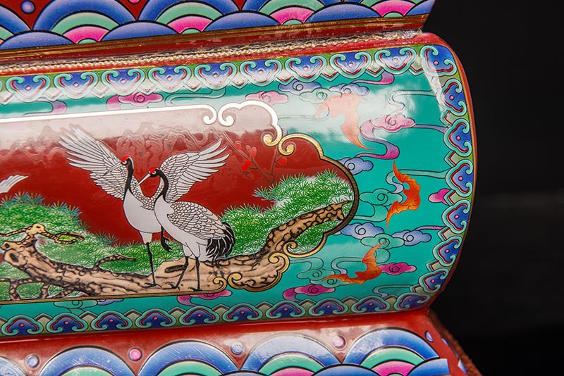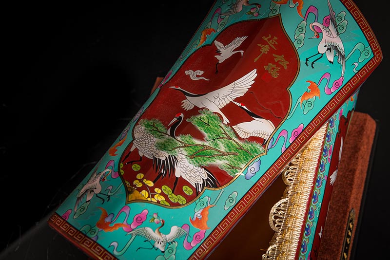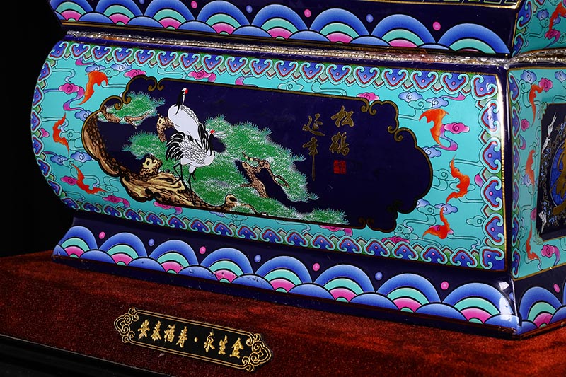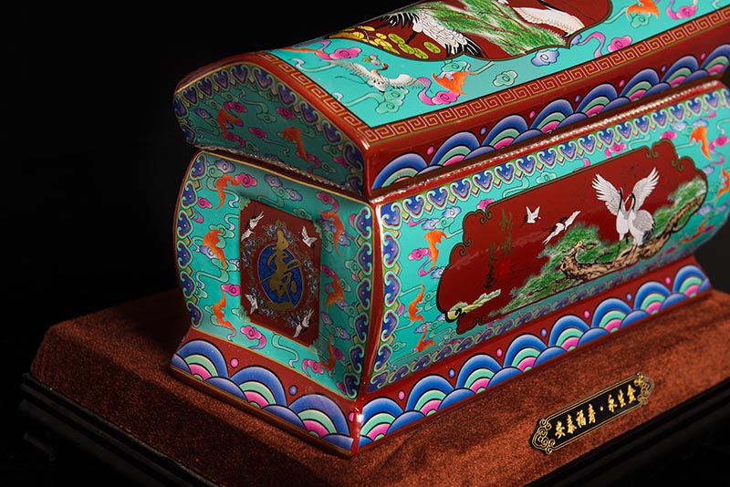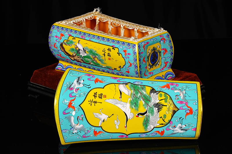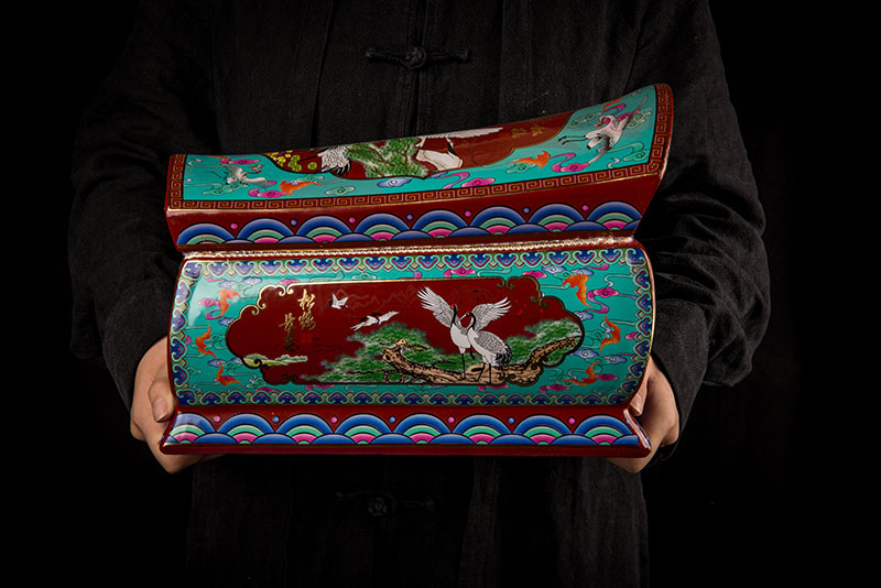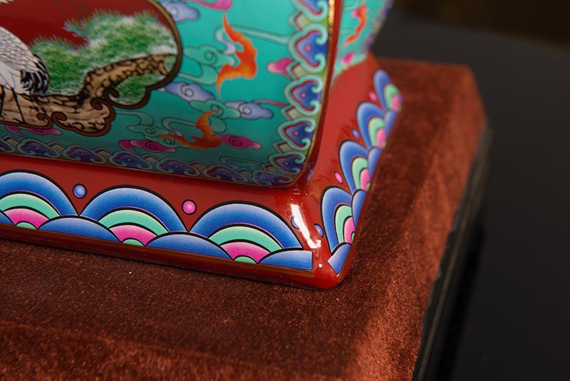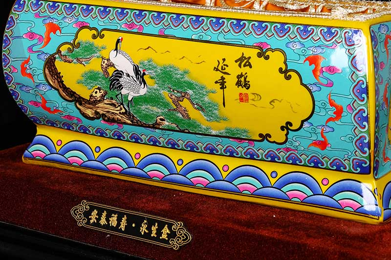 這一款產(chǎn)品采用的是景德鎮(zhèn)獨(dú)特工藝粉彩工藝,色彩鮮明,呈色自然。原料用的是 “高嶺土”一種特別土礦資源,“高嶺土”又有高齡之意,與我們產(chǎn)品【仙鶴年年】相得益彰,本款產(chǎn)品運(yùn)用了仙鶴、松樹(shù)、松鶴延年則寓延年益壽或?yàn)橹竟?jié)清高之意。  尺寸:345x200x240mm