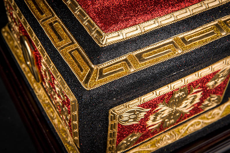 寓意:高潔不群,永垂不朽產(chǎn)品特征:24K金線(xiàn)漆線(xiàn)雕工藝,具特色的傳統(tǒng)民間手工藝精品,精細(xì)雕刻,線(xiàn)條流暢,顏色搭配簡(jiǎn)約大氣,松鶴延年圖案更是寓意福壽延年。